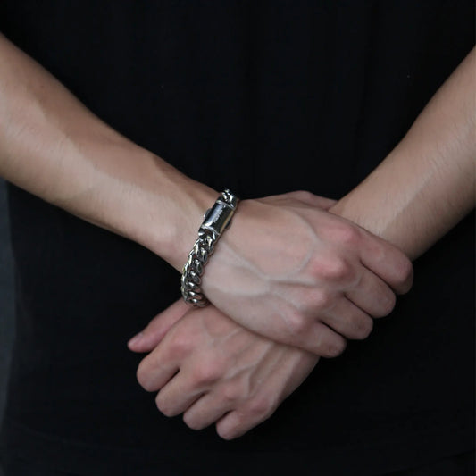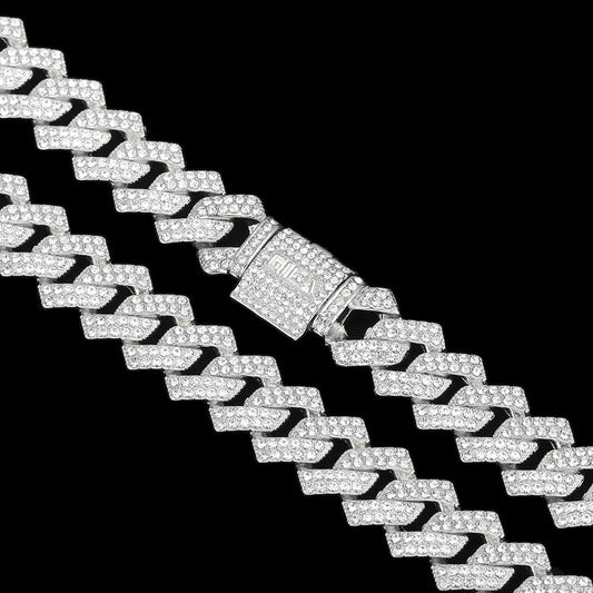 シルバー & オーシャンブルー Iced Out プロング チェーン ブレスレット