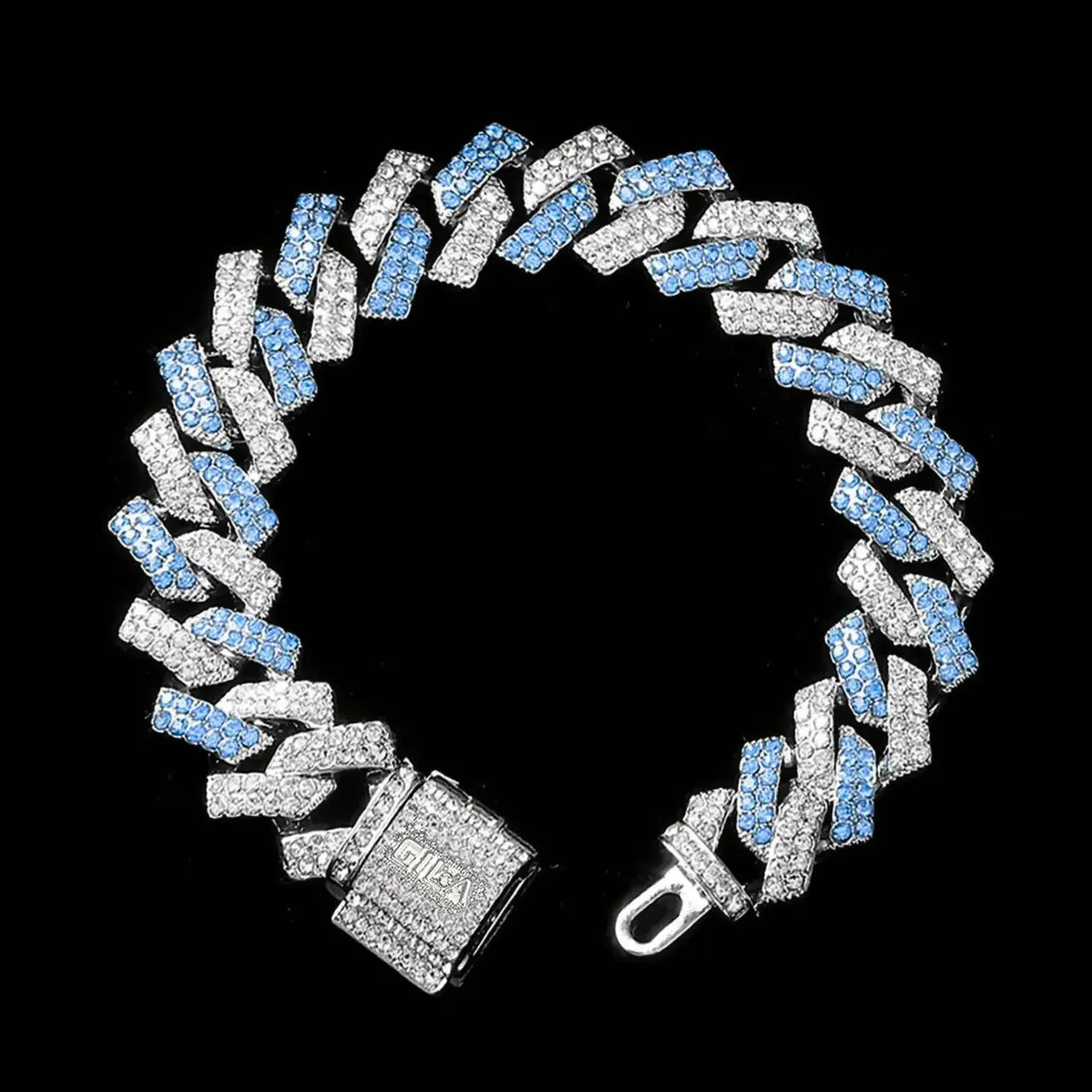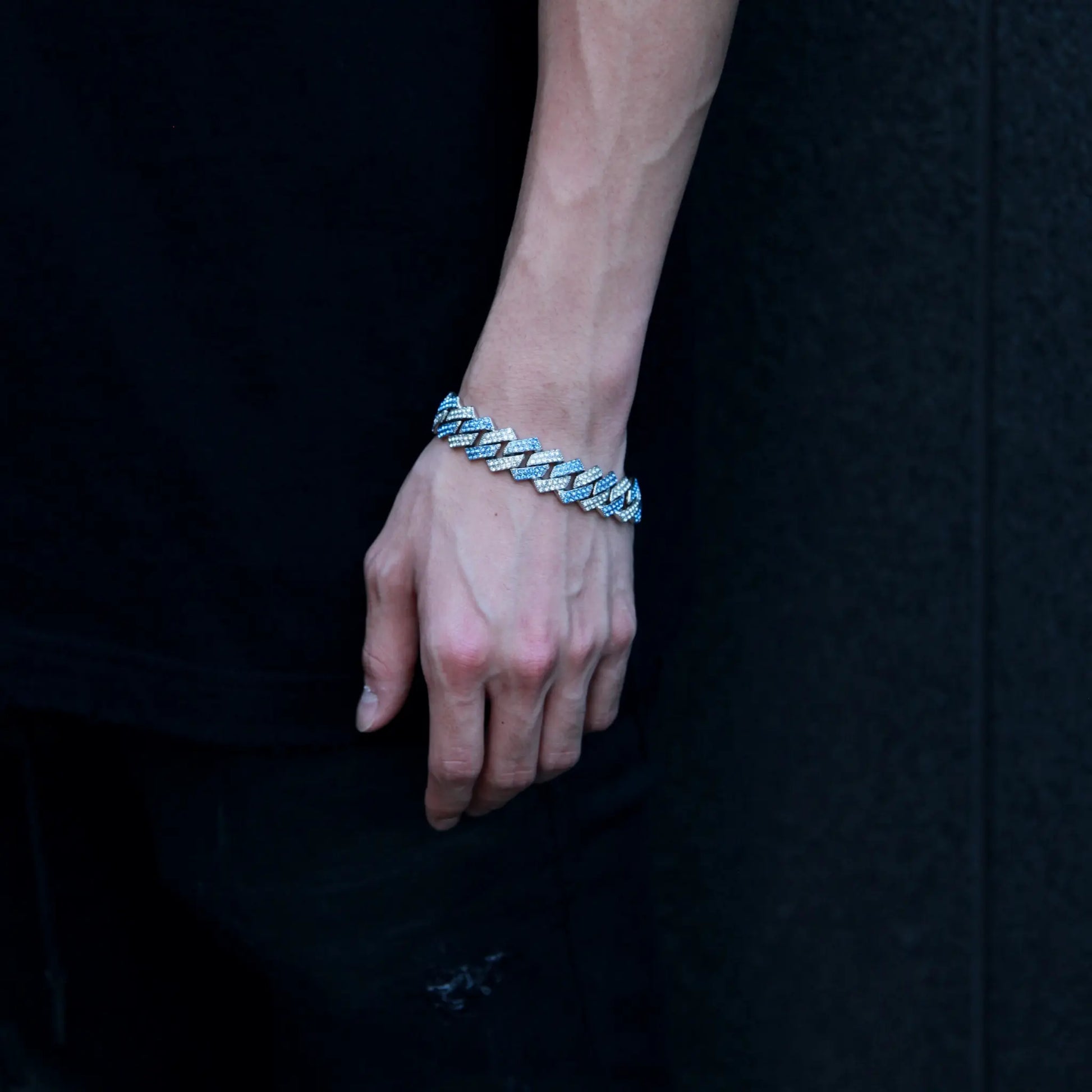 シルバー & オーシャンブルー Iced Out プロング チェーン ブレスレット